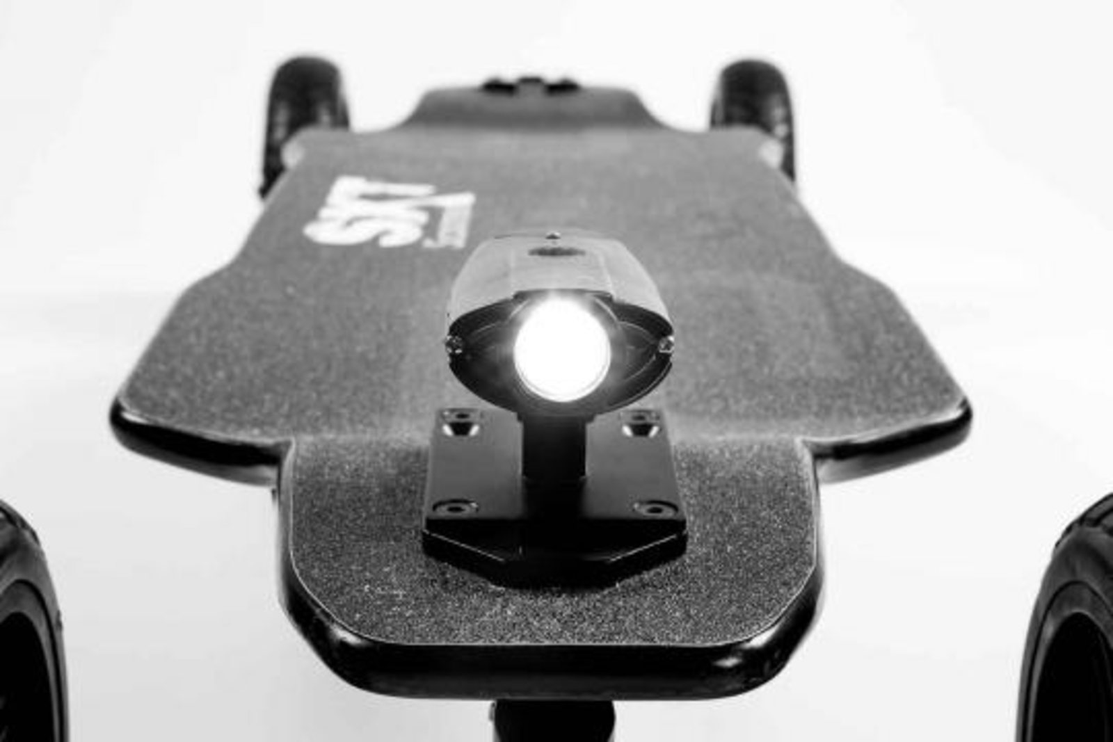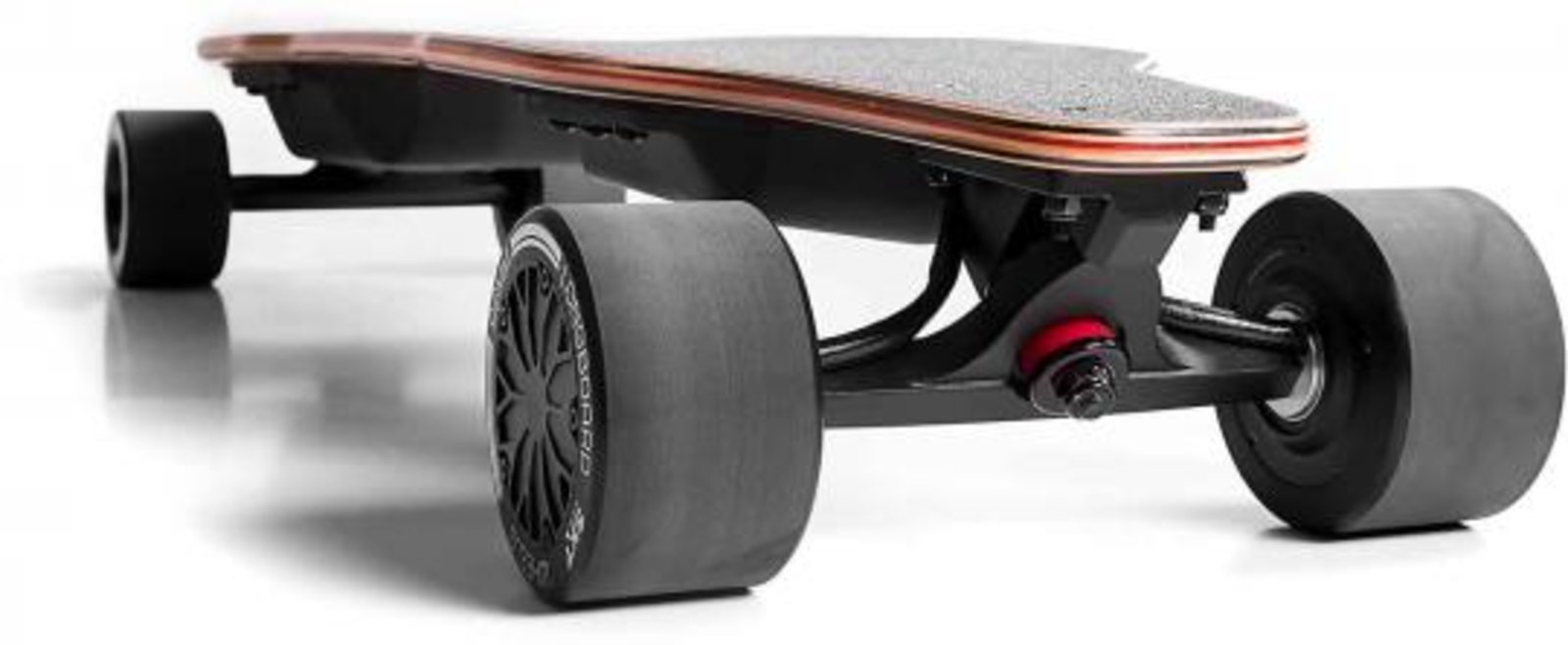 remote control is a 2.4 GHZ wireless R2 control unit with integrated OLED display, which reliably maintains communication between the longboard and handheld transmitter. In addition to acceleration and braking, the remote control also controls the Turbo mode, which is available for 30 seconds. But beware! Extreme accelaration power of + 20% is then available here